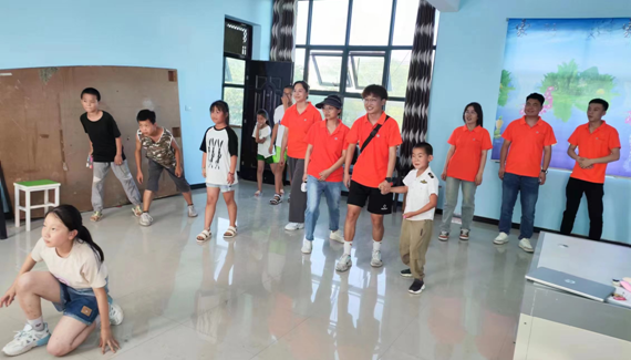 在游戏环节中,第一个游戏是“木头人”,选出两名成员负责念出“123木头人”的口令,其他成员从同一起点出发,在口令念出过程中奔向对面,口令停止时必须立刻站在原地不动,动则出局,最先抵达对面的人获胜,游戏还设有奖品,孩子们玩的不亦乐乎。