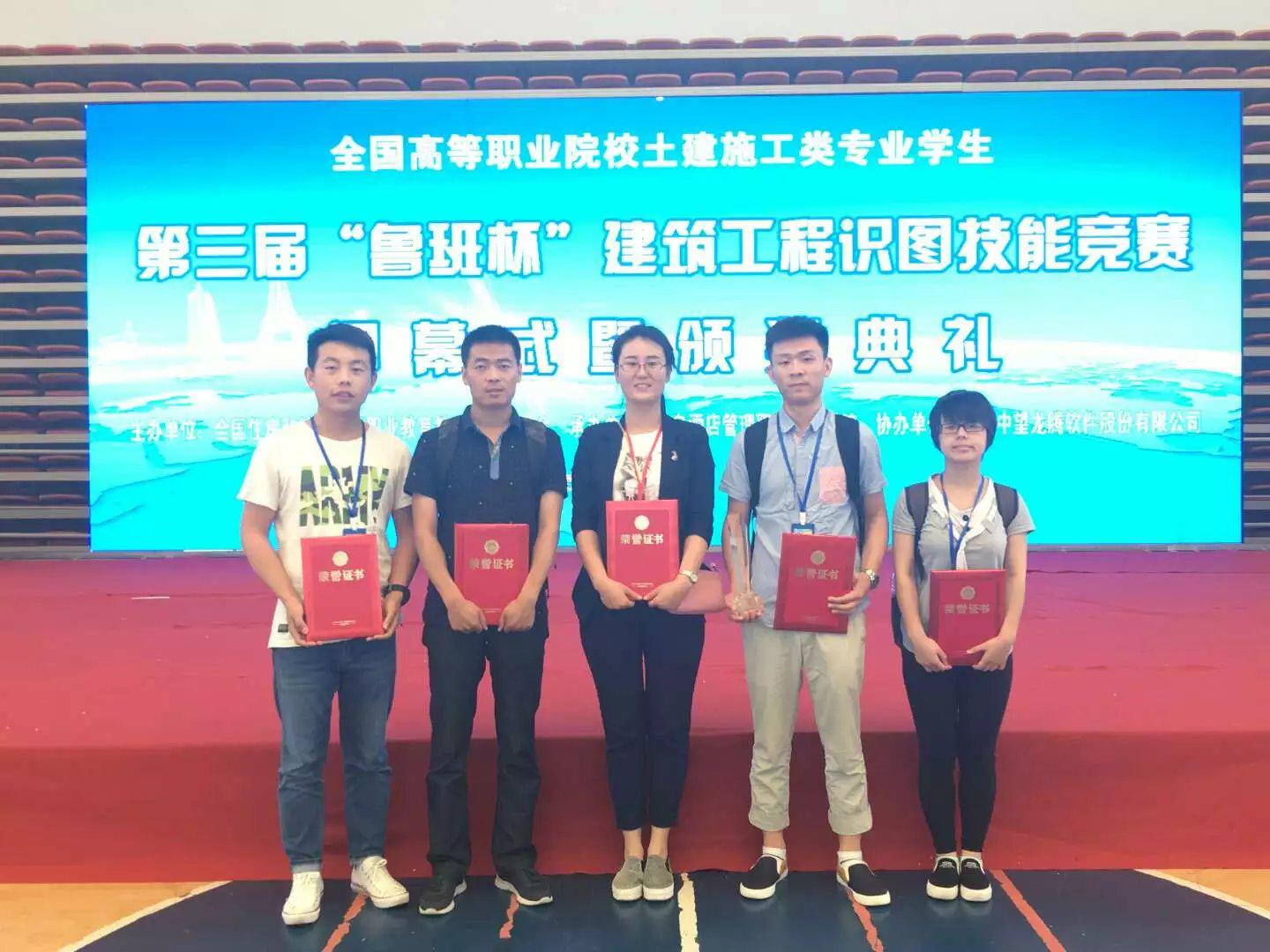 6月3日至5日,由全国住房和城乡建设部、全国住房和城乡建设职业教育教学指导委员会主办的全国高等职业院校土建施工类专业第三届“鲁班杯”建筑工程识图技能竞赛在青岛举行,我院代表队与全国26个省市184所高职院校的近千名选手参加了比赛,并取得优异成绩。
