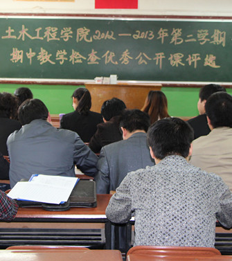 2013年4月25日下午土木工程学院优秀教学活动评比在崇文北楼201教室举行,张艳、朱君俊、侯艳芳三位专职教师就不同课程内容精心准备,从教学内容、教学方法、教学组织、表达能力多方面展示各自教学环节特点,气氛热烈。