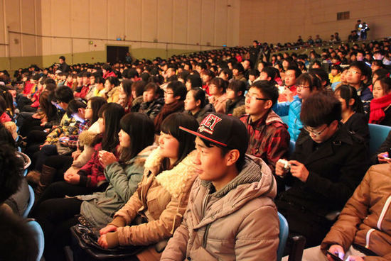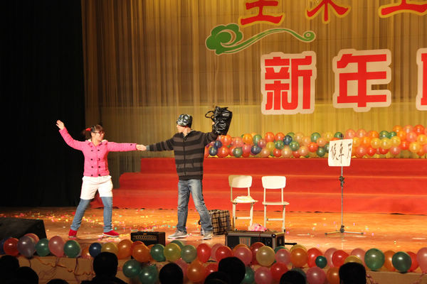 联欢会上师生同台献艺。《江南style》、《另类阳光》、《三句半》、《车站》、《激情飞扬》等同学们的精彩原创演出博得了全场观众的阵阵喝彩;王涛、郭欢、夏伟、侯经文以及尚昆等老师的倾情表演将联欢会推向了一个又一个的高潮,现场气氛异常热烈。