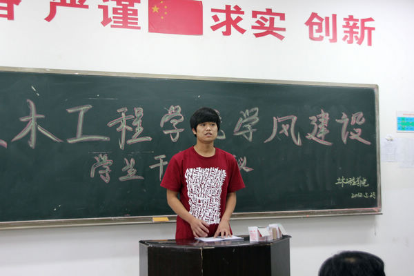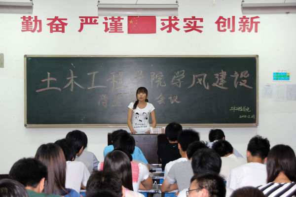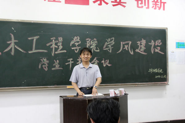2012年5月28日下午,我院在崇文东楼206召开了“土木工程学院学风建设学生干部会议”。参会人员有土木工程学院院长贺天柱,党总支书记何克祥,学工办主任程建卫,学生会全体干部以及各班班长、团支书、学习委员。会议由学工办主任程建卫主持。