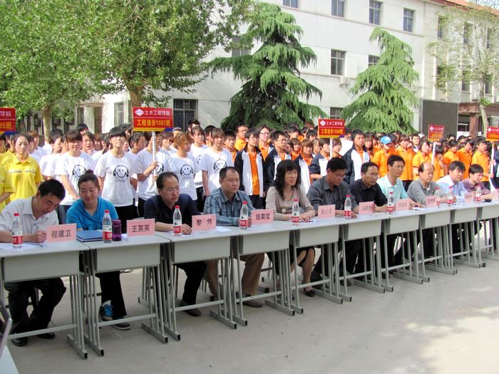 学院学工部部长王超联和图书馆馆长冯德虎、就业指导处处长孙小云、图书馆副馆长杨蜀莹、学生处副处长张智清、科研处副处长黎炜五名联系土木学院班级的处级干部担任了本次比赛评委。在土木工程学院党总支书记、副院长何克祥的宣布下,体操比赛正式开始。