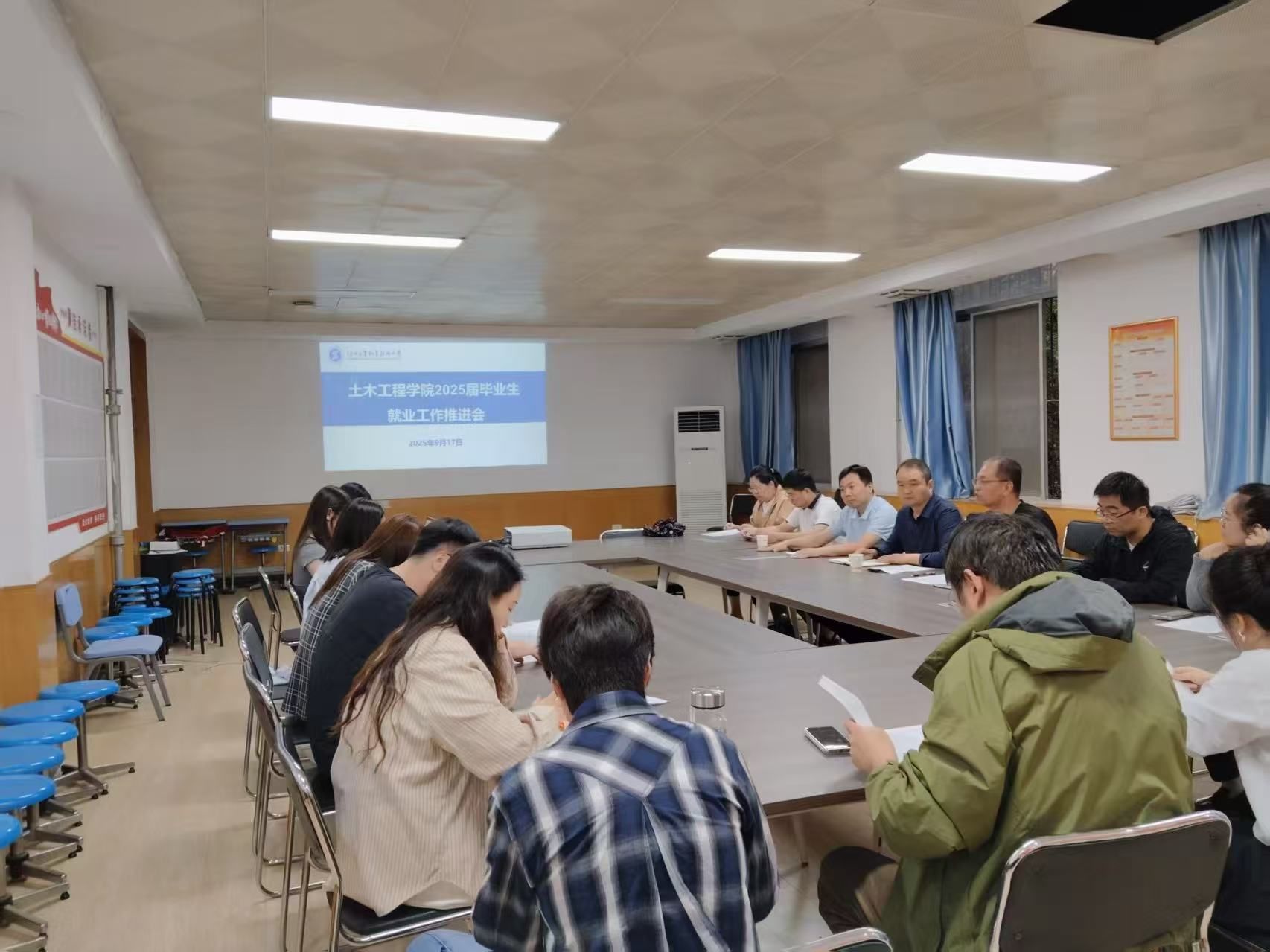 为深入贯彻落实学校关于毕业生就业工作的部署要求,持续推进 2025 届毕业生就业工作,助力毕业生实现高质量充分就业,9月17日,土木工程学院在格物楼219会议室召开2025届毕业生就业工作推进会,土木工程学院党总支书记卢文澈、院长杨谦、学工办主任马俊、毕业班辅导员和毕业班班主任参加了此次会议。
