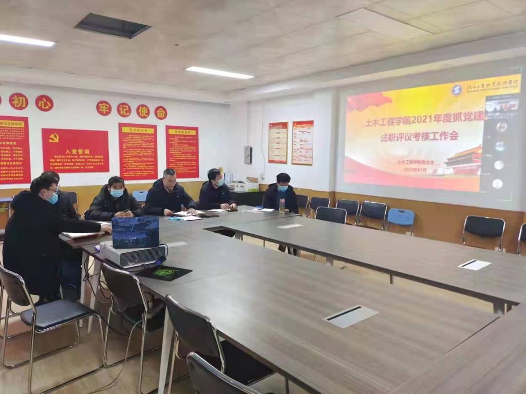 按照学校党委年度工作安排,1月12日下午,土木工程学院党总支在格物楼219室召开党组织书记抓党建述职评议考核工作会,会议采用线上线下结合的形式,土木工程学院院长杨谦、党总支委员、支部书记及各支部委员参会,党总支书记张科海主持会议。