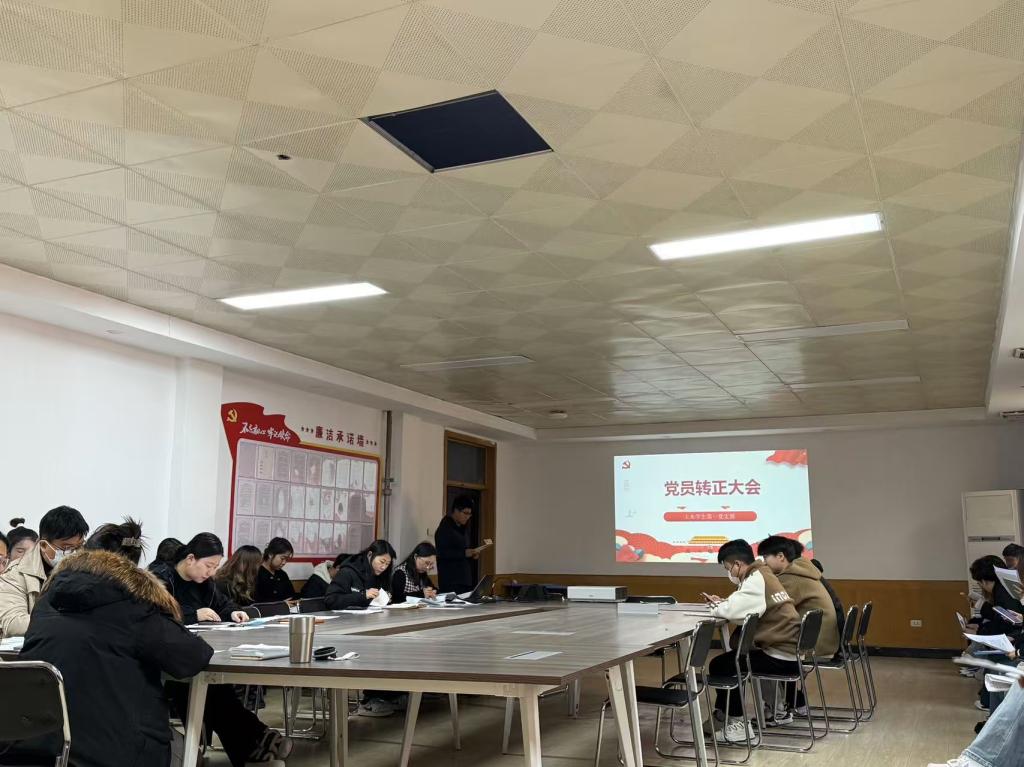 2024年11月27日,土木学生第一党支部召开预备党员转正大会。土木学生第一党支部所有教师党员和学生党员都参加了此次会议。
