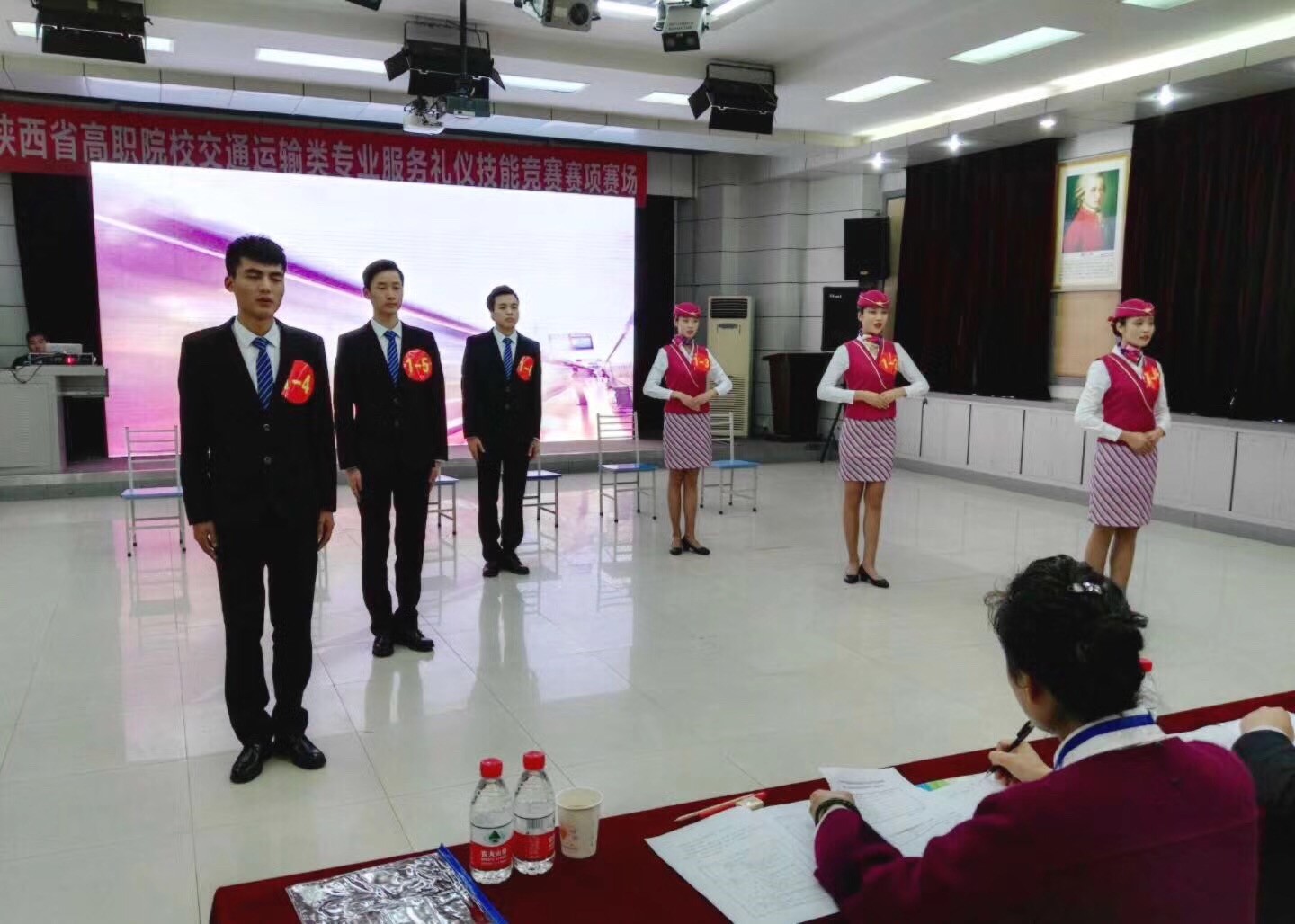 此次大赛以技能竞赛为平台,对接交通运输行业服务岗位对技能人才的需要,通过礼仪知识竞赛、仪态展示、仪容仪表及沟通艺术展示、情景剧四个环节展示学生的岗位意识和职业能力,来自全省的10所高校16个代表队参加了比赛。我院代表队前期在指导老师魏薇、王扶义老师的带领下,积极筹备、克服困难,代表队在此次比赛中表现出了良好的技能水平和专业素养,体现了吃苦奉献、拼搏争先的学院精神。最终,我院道路桥梁工程技术专业1601班何琳、吴帅、李杰、高航,工程造价1603雷倩雯,工程造价1604杨肖共六名同学荣获团体二等奖的佳绩。