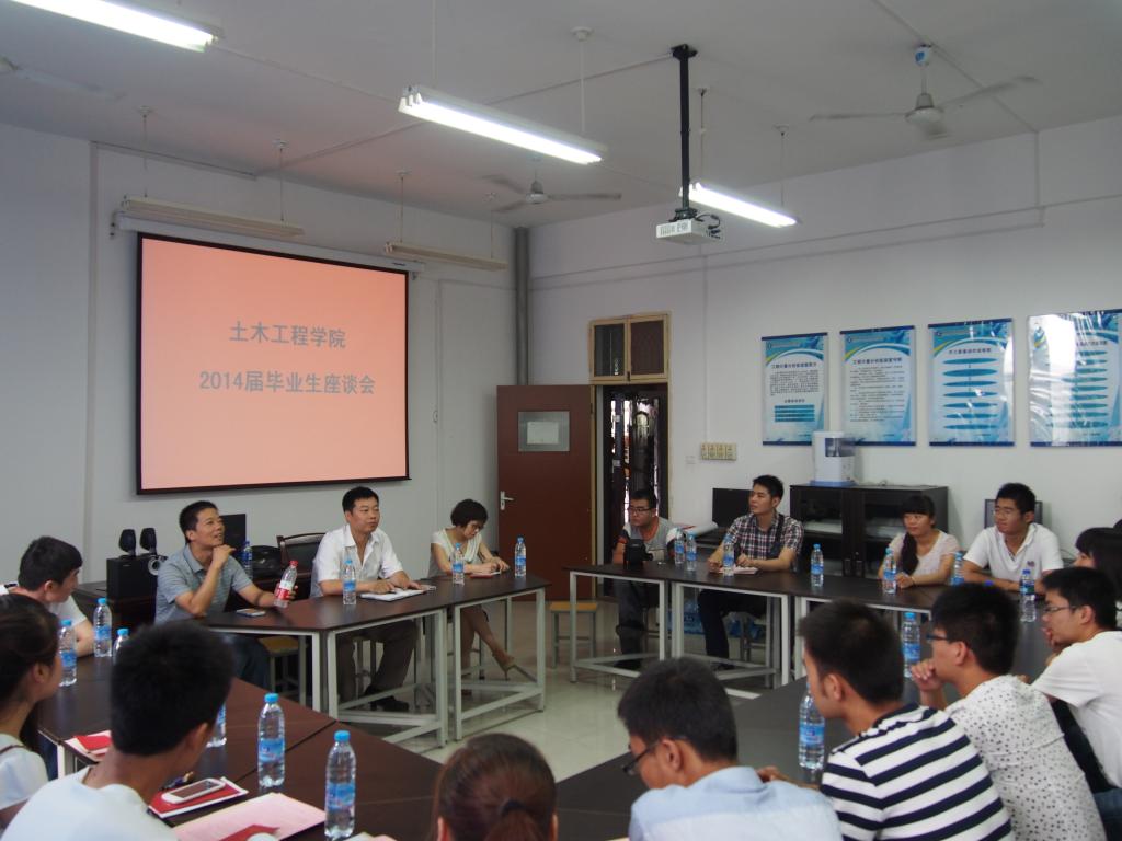 2014年7月1日上午10点,土木学院在崇文楼A307举行了毕业生座谈会,就教学、管理等方面进行了愉快的交谈。
