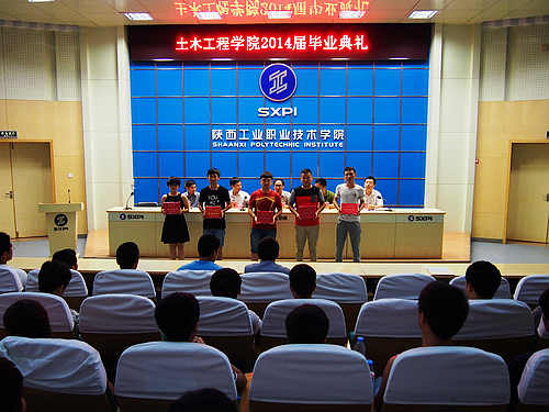 下午3点,土木工程学院2014届毕业典礼在学术会堂隆重举行。土木工程学院党总支书记何克祥,土木学院副院长杨谦,教学办主任李捷斌,实训中心主任武强,学工办辅导员和部分毕业生参加了典礼。会议由土木学院学工办主任韩二豹主持。