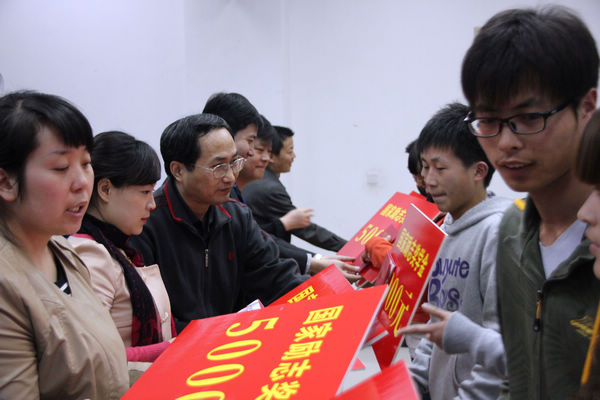 土木学院学工办主任程建卫宣布了2011-2012学年国家奖学金及国家励志奖学金的表彰决定。随后进行了颁奖。土木工程学院党总支书记何克祥、学院资助管理中心主任张艳为获得国家奖学金的杨会会、李庆2名同学颁奖,土木工程学院副院长杨谦、教学办主任王涛等老师为兰富强等42名同学颁发了国家励志奖学金,学院资助管理中心主任张艳介绍了学院资助管理中心在2011-2012年内的相关资助情况并向获奖者表示祝贺。