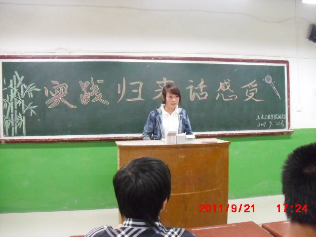 为了响应我校院团委在全院开展的“实践归来话感受”的活动,我系在9月21日下午4:30——6:30,以“暑假实践归来话感受”为主题的10级土木主题团日活动在崇文北楼201教室成功举行。此次活动由10级土木班同学代表参加,这次活动在同学们的欢声笑语中愉快地进行着,同学们不仅交流了自身的实践感受,还从他人的实践经历中学习到了很多。