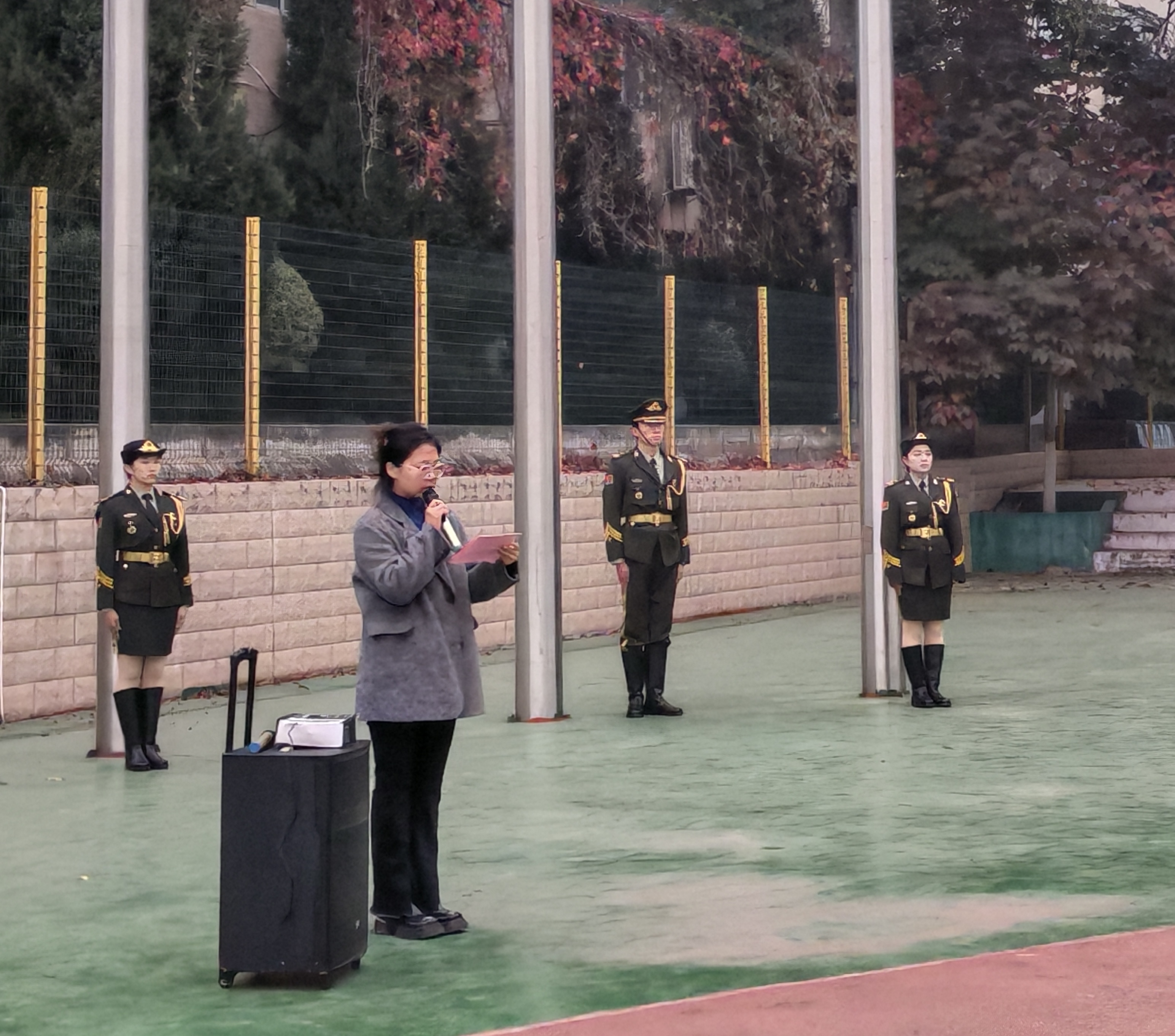 伴随着《义勇军进行曲》的歌声,五星红旗冉冉升起,全体师生面向国旗行注目礼。随后,辅导员倪扬和2024级学生代表赵珂萌分别以《生命至上 防患未“燃”》和《注重消防安全 共筑平安校园》为题,作国旗下的发言。发言强调:刚过11月9日——第33个全国消防日,11月作为消防宣传月,要引导学生进一步提高消防安全意识,时刻关注消防安全,自觉遵守消防法律法规,增强自我防护能力,坚决遏制火灾事故的发生,创造良好的消防安全环境,筑牢健康、文明、和谐的校园温馨港湾。