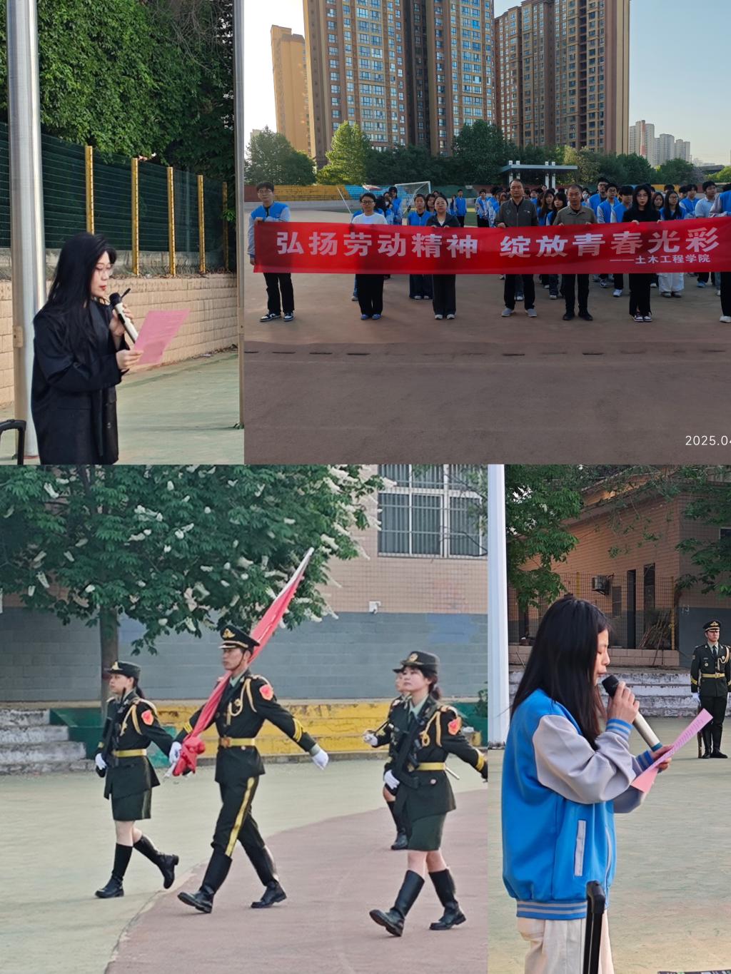 随后,学生代表王瑶上台分享经历。她谈到,从古老农耕文明到如今科技时代,劳动始终推动着人类社会进步。希望在场学生能和她一起在青春的时光里,大力弘扬劳动精神,努力学习专业知识,积极参与实践锻炼,书写属于土木工程学子的精彩篇章。