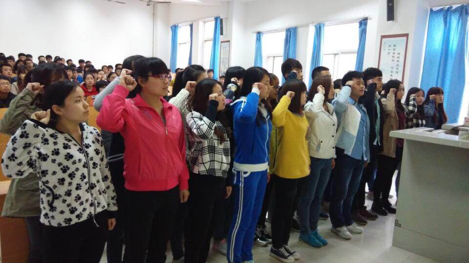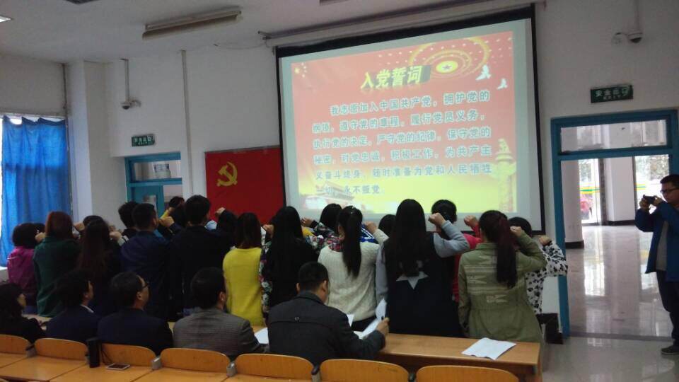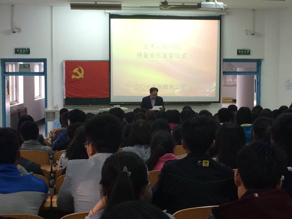 2015年4月2日下午,土木工程学院新党员入党宣誓大会在崇文西楼101教室隆重举行,参加此次活动的有党委组织部干部管理科科长侯涛、土木工程学院党总支书记何克祥、土木学生工作支部党员及积极分子。