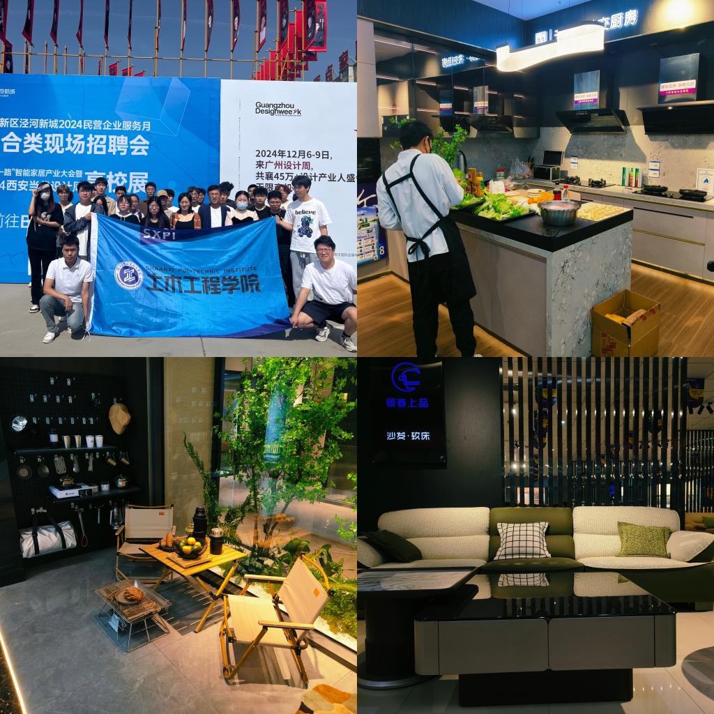 为探寻行业创新展贸模式,共谋高质量崭新未来,4月27日上午,土木工程学院教师秦亚梅、安亚强,辅导员曲雪带领三十名应届毕业生代表参加了由西咸新区泾河新城、广州设计周、中国原点新城联合共同举办的“一带一路”智能家居艺术展演暨招聘会。